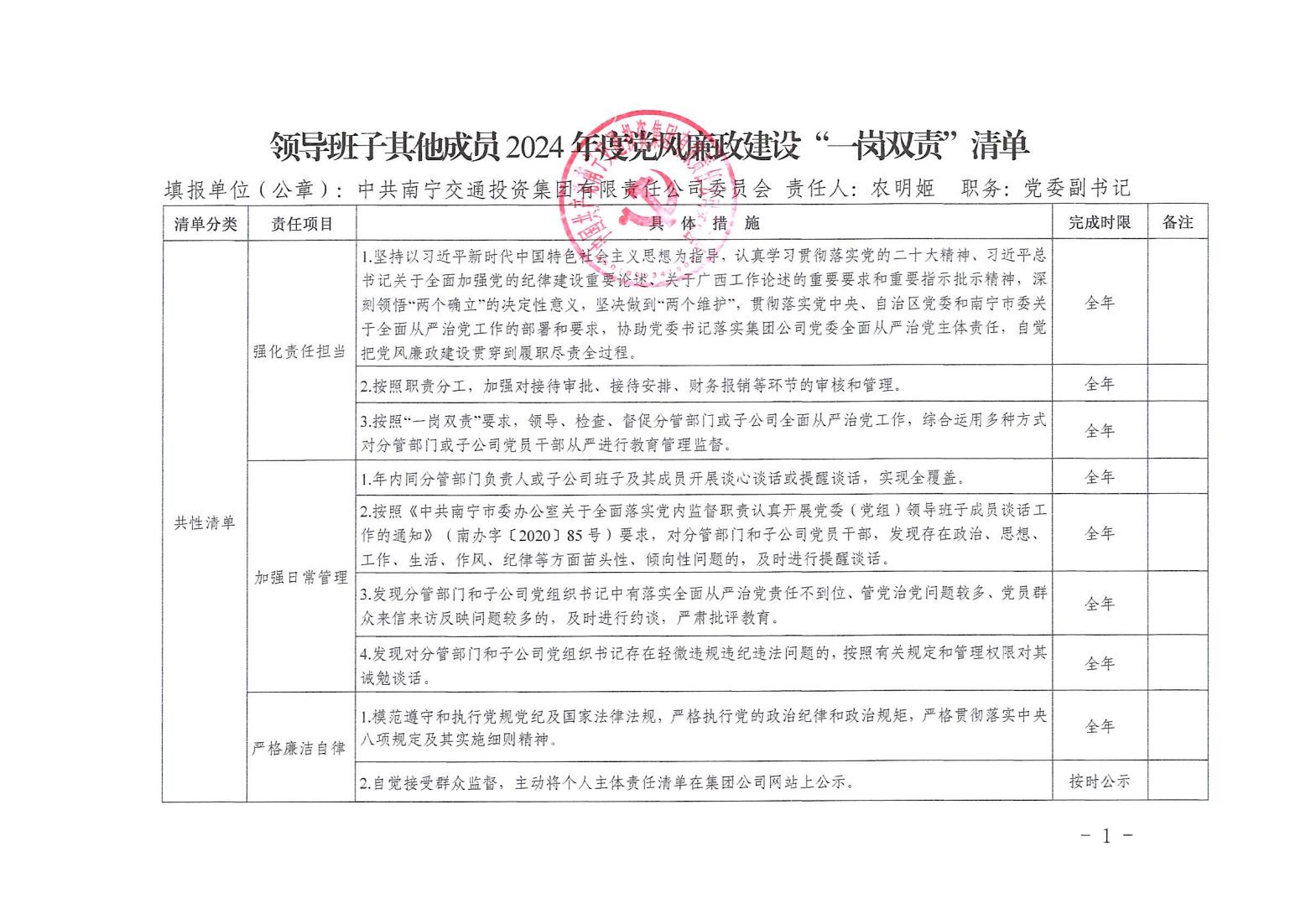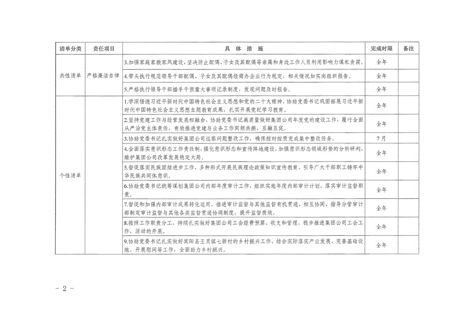 領(lǐng)導(dǎo)班子其他成員2024年度黨風(fēng)廉政建設(shè)“一崗雙責(zé)”清單(二)