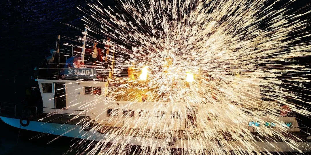 閃爍的鐵花在夜空中傾瀉而下,如同絢爛的煙花雨,場面頗為壯觀。