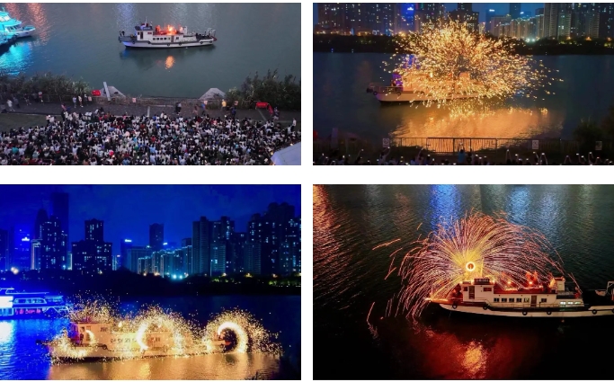 假期期間,南寧旅發(fā)公司在孔廟旅游碼頭為市民游客們獻上這一幕“火樹銀花一朝落,萬點星辰漫天散”的美景。